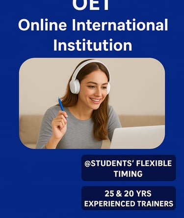 The Occupational English Test (OET) is an English language exam designed for healthcare professionals is an English language exam designed for healthcare professionals, recognized by regulators and institutions worldwide.